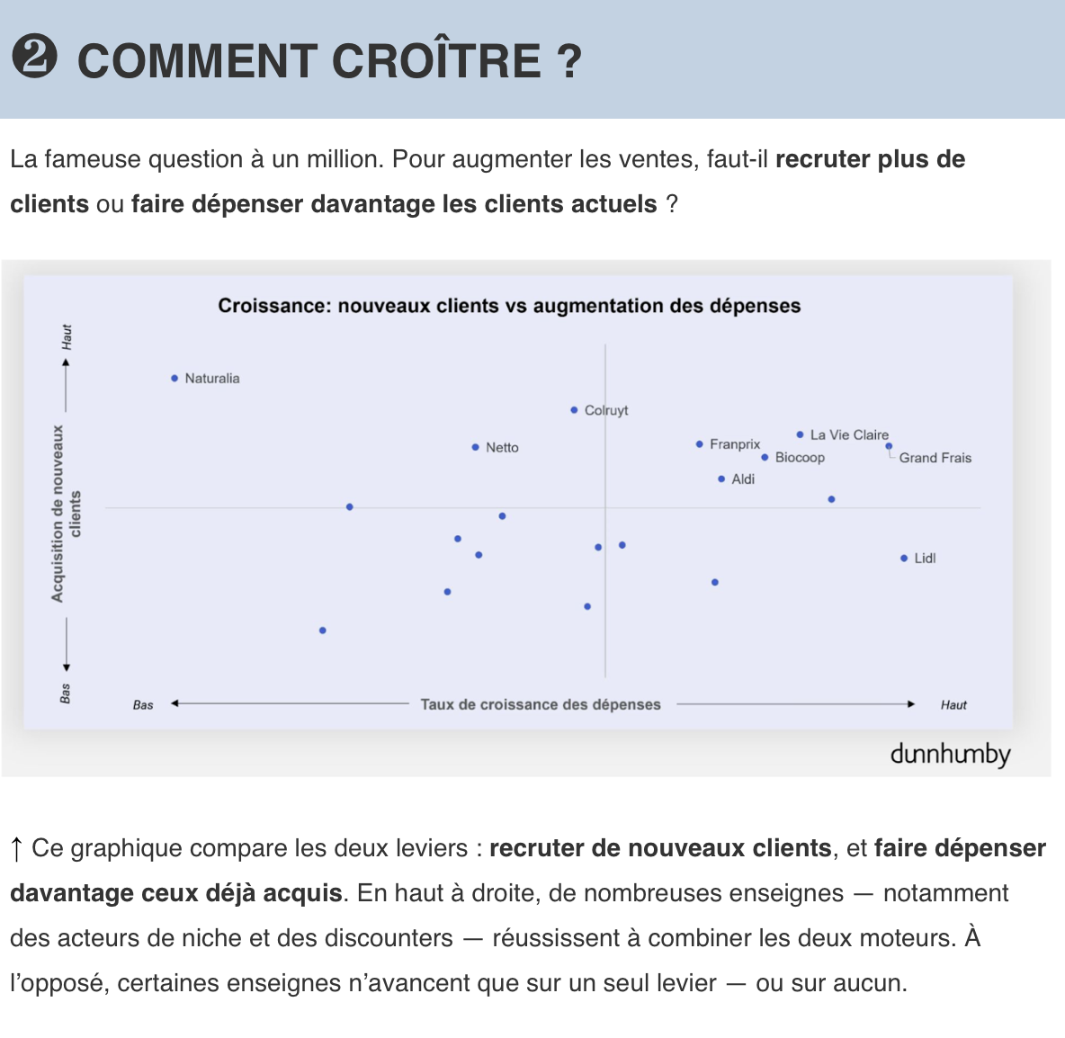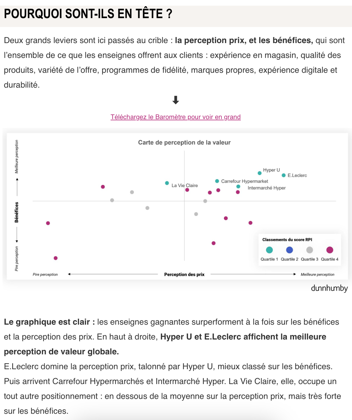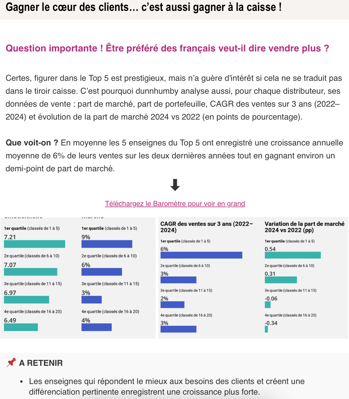 Enfin, les résultats du baromètre dunnhumby sont sans appel : les enseignes les mieux classées surpassent leurs concurrentes en termes de croissance annuelle.